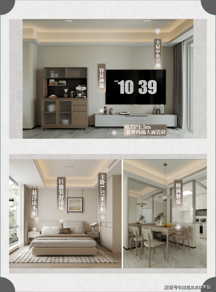 精准聚焦购房者的个性需求及审美风向,带来中古风、现代简约、意式轻奢三大居家美学风格,
