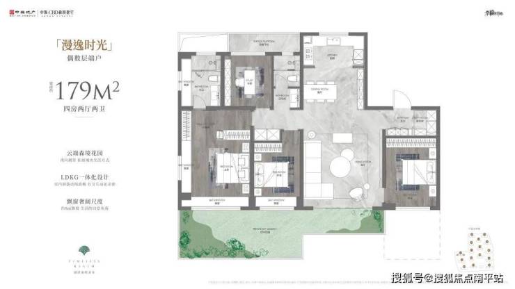 建面179㎡户型采用LDKG一体化设计,缩短日常活动动线,3米进深的专属花园,仪式感拉满;入户家政间和过道收纳空间,把每一平都用在了刀刃上。