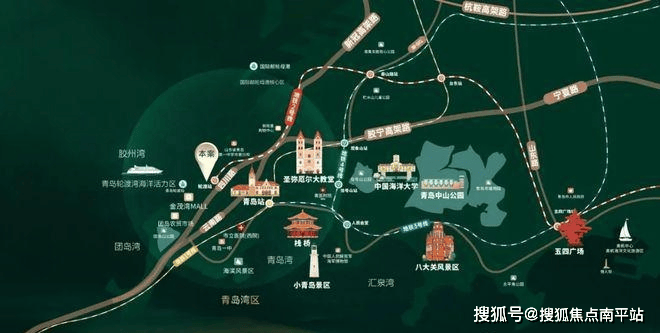 ②30分钟链接市南优质资源:约10分钟青岛站,约20分钟信号山(青大附院)站 ,约22分钟五四广场站(万象城) ,约30分钟中山公园站(八大关风景区) 。