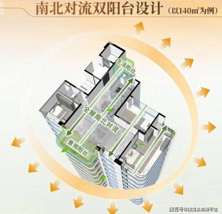其中,140平为主力户型,而120-140平中型改善的配置,也是目前海珠区供应比较稀缺的。全系南北对流双阳台设计: