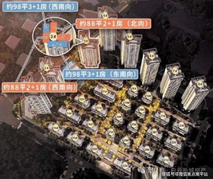 项目总共由8栋住宅和25栋叠墅组成,目前住宅的4栋和5栋还有少量单位,主要在推的是3栋的住宅,面积88-98㎡三房和四房户型。目前1栋和2栋的住宅还没推出,预计准备推出2栋的房源,6栋、7栋、8栋为安置房。