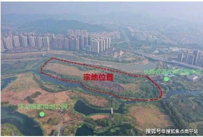 地块坐落于长沙市岳麓区洋湖正芯,三面被洋湖湿地公园包围,北侧为靳江河景观长廊,东北角紧挨着长郡双语洋湖实验中学。