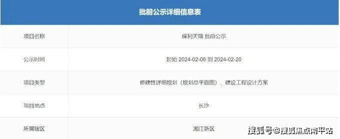 早在上月初,保利天瑞就进行了批前公示。