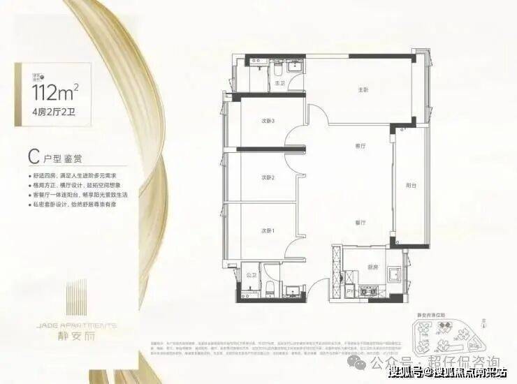 户型产品:约85-112㎡ 3-4房臻品美宅