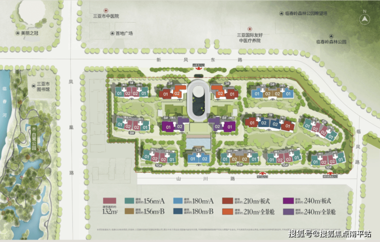 ◎产品面积:建面约132m²、156m²、180m²、210m²、240m²,共603席