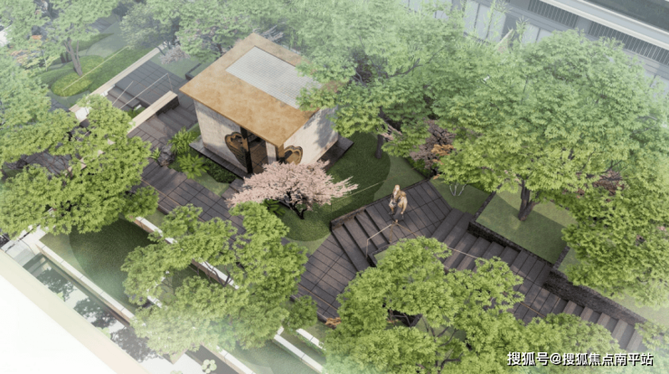 约212M绿道中轴贯穿社区西东,中庭以一座静谧花园为生态功能区;更有意思的是,宜禾·海月府设计了双下沉花园通过竖向设计打破空间限制,与台地形成“人在谷中,云在脚下”的沉浸式富氧体验。
