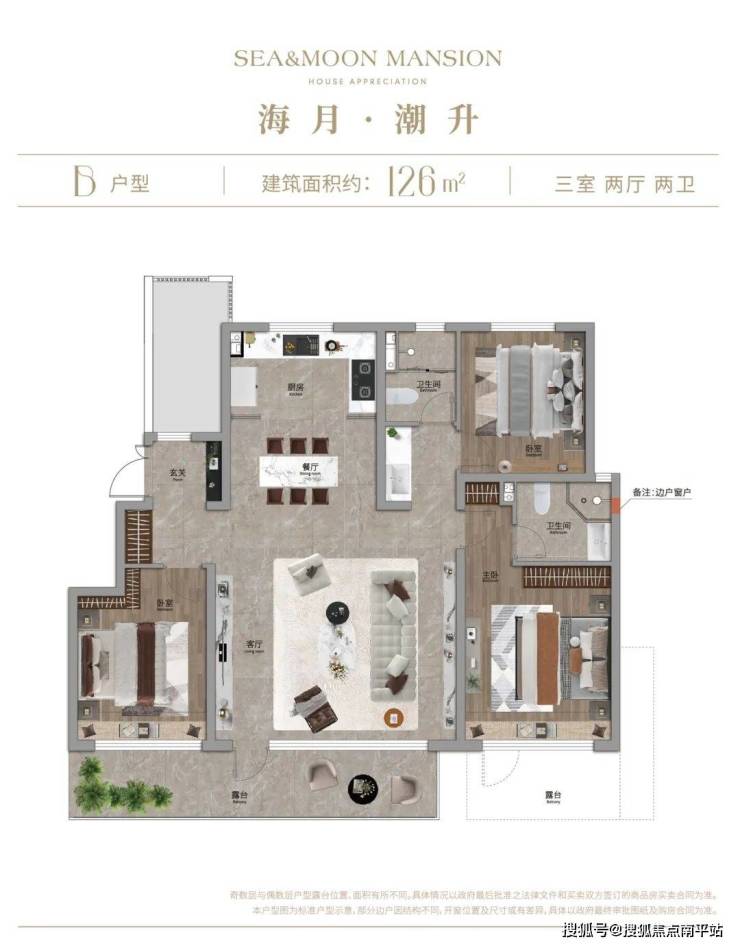 在户型设计上,宜禾·海月府目前推出建面约116~138㎡的三室、四室户型,每一家拥有空间阔绰的独立露台,打破了房子原本的尺度,将社区的盎然生机延伸进室内。
