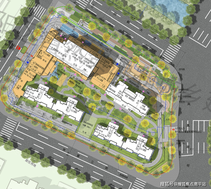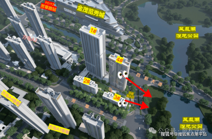 从平面图看,该地块体量不大,但还算方正,楼栋整体都是西南朝向,洋房和高层分布在地块东南侧,更靠近凤凰湖,尤其是高层住宅,有非常好的观湖视野!