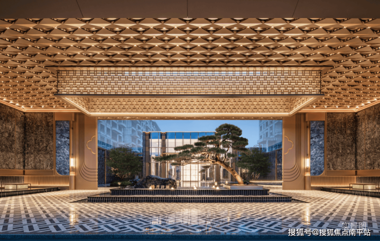 逸澜庭院是归家途中的谧境,以“泗水归堂”为设计核心,屋顶雨水顺势汇入庭院中央,既形成灵动水景,又藏纳 “聚财养气” 的美好期许。水畔的绚丽海棠在秋日里叶缘泛金,微风拂过便轻轻摇曳,与星耀灰石材景墙相映成趣。