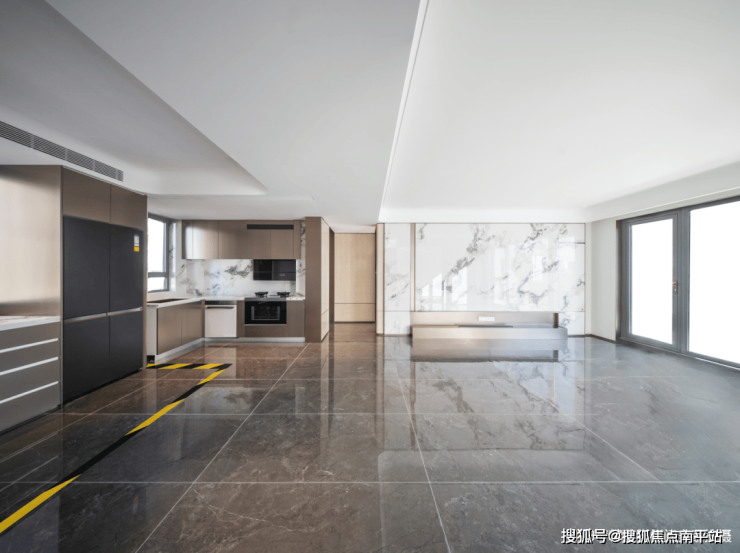 踏入建面约103㎡精装样板间,最先被打动的是超越同面积段的奢阔感。