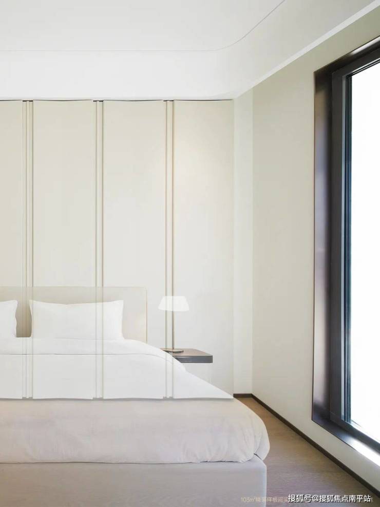 对于三代同堂的家庭来说,“私人空间”是卸下疲惫的重要场所。103㎡户型的主卧套房,以朝南布局+全景飘窗+独立卫浴的配置,为主人打造出一方不受打扰的休憩秘境。