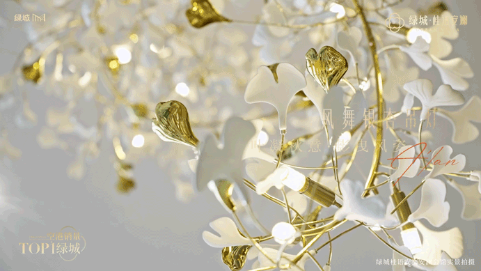 风舞银杏艺术定制吊灯垂下,暖光透过银杏叶造型洒下,秋意与鎏金质感交织,温馨又华贵;摩登旋转楼梯更是“打卡圣地”,金属与石材碰撞出时尚感,流畅线条随手拍都是高级大片。