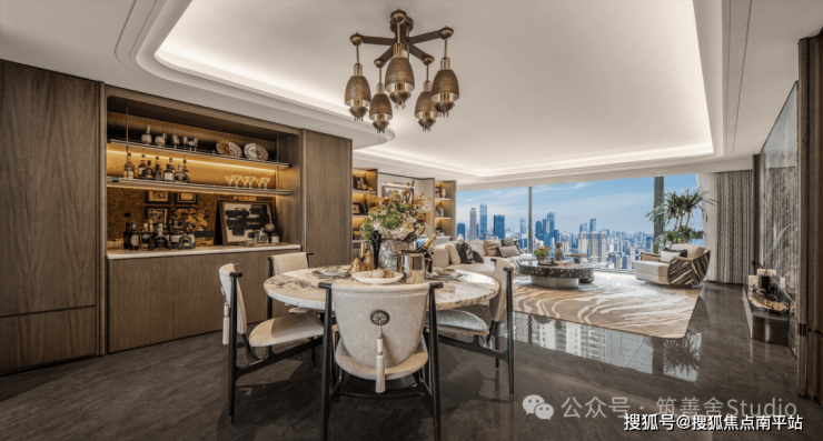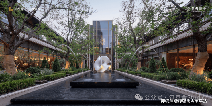 下沉庭院汲取西班牙阿尔罕布拉宫的精髓,阵列跳泉错落有致,乌桕与油橄榄相映成趣。幻影蓝水台与高艺术雕塑重现宫廷水轴的尊贵仪制,呼应庭院的珍贵,为璀璨生活埋下伏笔。三时有花,四季见绿,每一次驻足,皆是一场与自然和艺术的亲密对话。
