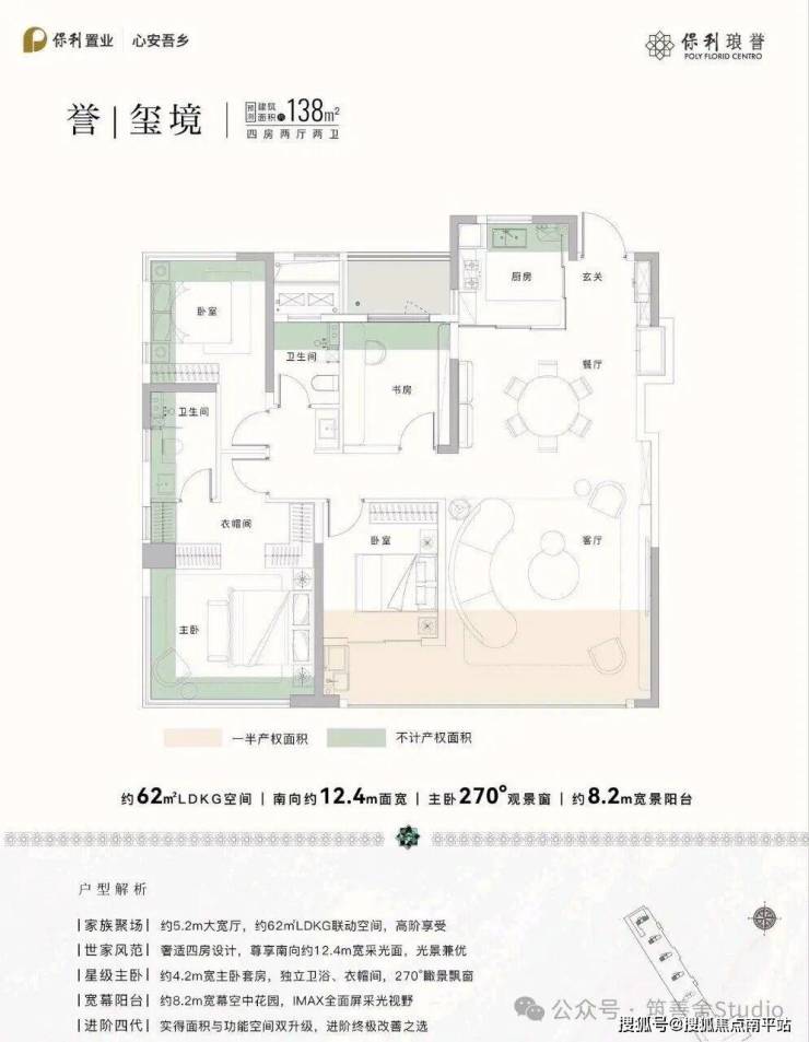 建筑面积约138㎡户型,约62㎡LDKG一体化设计,巧妙融合阳台、餐厅、客厅与厨房,将无限风光尽收眼底,如画卷般展开。约12.4米南向面宽,让全屋采光自由,阳光洒满每个角落,明亮温暖成为日常。270°环幕主卧将城市美景引入室内,独立卫浴与衣帽间,打造媲美星级酒店的休憩体验。