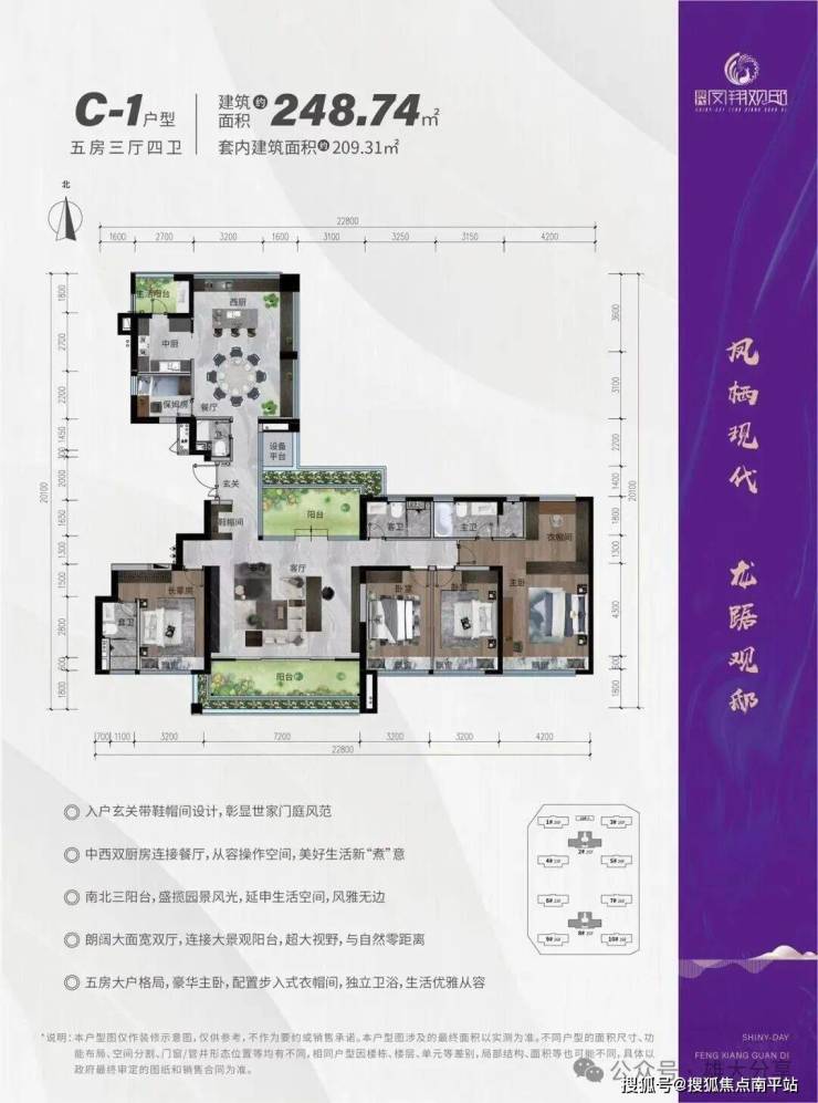 建面约248.74㎡ 五房两厅四卫