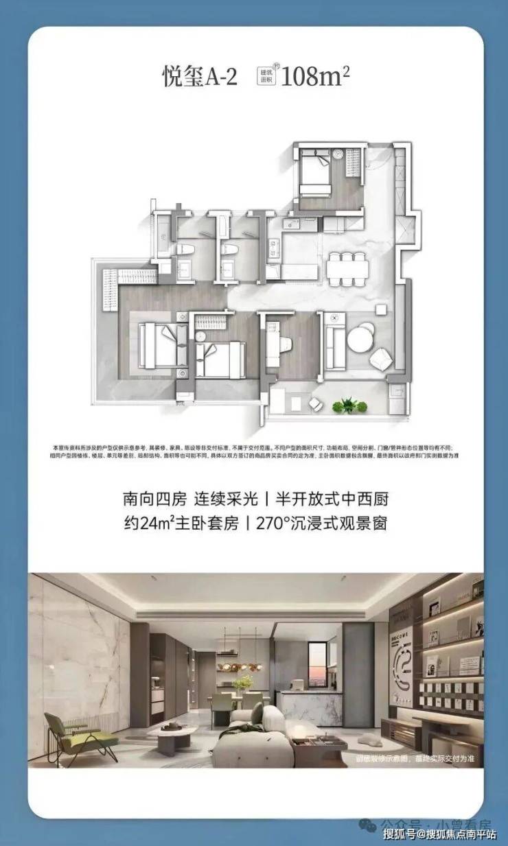 刚需家庭可以关注 108㎡的四房户型,总价 600-670 万左右,进门有灵动空间可作为茶室或客卧,U 型厨房带岛台设计让烹饪动线更流畅,主卧的 270°U 型飘窗带来不错的采光和视野。