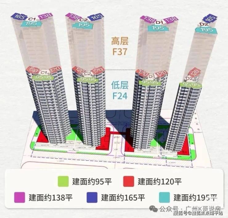 项目规划 有4栋37层高层住宅楼 ,住宅楼都分为高区和低区两部分。