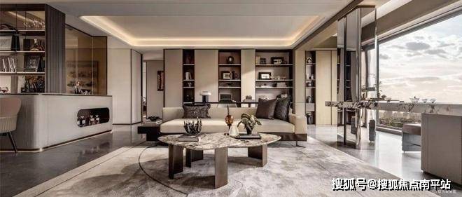 坐拥中北核芯地段与前沿设计的御河臻璟,也在园林与户型方面进行不断迭代升级。除了项目出口处的水幕景墙外,在中央会客厅前设置景观浮桥与特色水景,使整座会客厅看上去宛如被水环抱的“卡座”式共享交流空间。