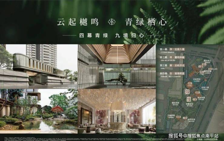 首先,是建筑和园林与山的“深度对话”。建筑以 “白云流韵”的线条呼应云山灵感,园林以“引山入 园”为核心理念,将白云山的“云、林、泉、石”自然元素,通过现代设计转译为 “一轴四幕九境”的东方意境。让居者的归家动线,从看山的旁观,转变为入画的体验。