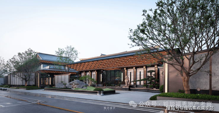 保利天瑞,匠造王府制式大门,大门坡顶屋檐远看有"重峦叠嶂"之感,配上门口点缀着宫廷才有的三出阙宫阙灯柱,造价百万一只的甪端瑞兽镇宅,这就是长沙顶豪的气魄和格局。别墅区打造有独立入园门户,中式飞檐翘角,搭配古铜色金属镂空大门,庄严中不失现代典雅风范,高端大气。项目传承千年府院文化,以“前庭中院后园”的府院规制,著立世家门庭府邸。【一轴入府,九礼归堂】的布局,将府门、水院、会馆有序规划,在动线上构建出层层递进、步步尊崇的境界。借鉴中国巷院规划形态,取意各大名园的造景之法。打造【四巷九园】的院落布局,让居住与自然山水无界相融。