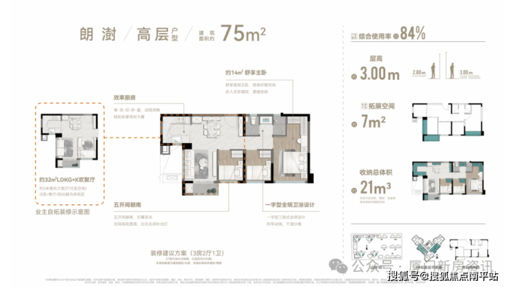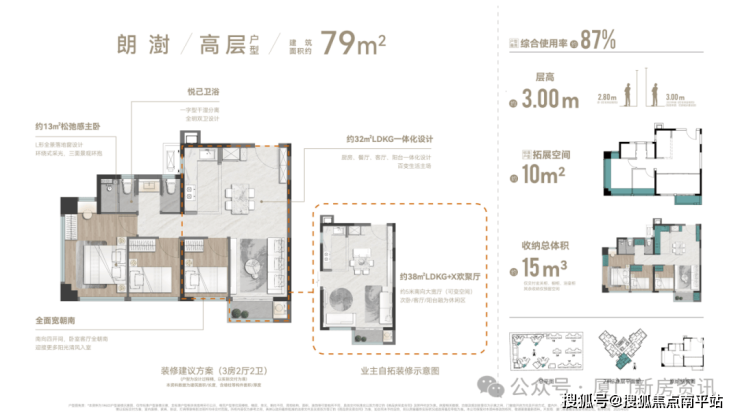 刚需64㎡首开7#楼 仅30套(全盘仅60套) ,层高3米, 得房率85% ,使用面积相当于目前市场上75㎡的户型,客厅卧室全朝南,主卧14㎡带衣帽间,华为鸿蒙智慧+顶配精装,总价 折后280-300万 ,绝对的岛内新房最低门槛!