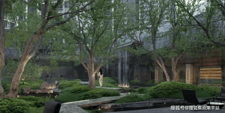 ③度假感下沉庭院:东方园林山水造诣,层级叠错。自然地形结合叠水叠石,形成特色森系庭院
