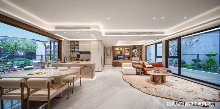 约13.5米南向四开间,最大约50㎡的无界宽厅,约6米挑高的空中双花园 …构建出一个 “实际使用感媲美传统150㎡” 的空间体验。