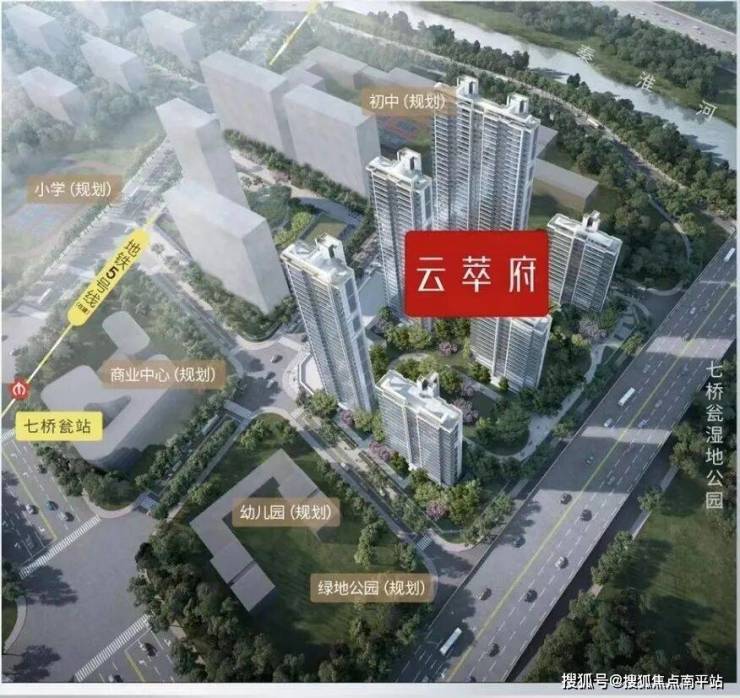 云萃府位于南部新城的东北角,东边就是七桥瓮生态湿地公园,部分户型能看到紫金山,楼下不远处是地铁5号线七桥瓮站(预计明年3月底、4月初全线通车)。