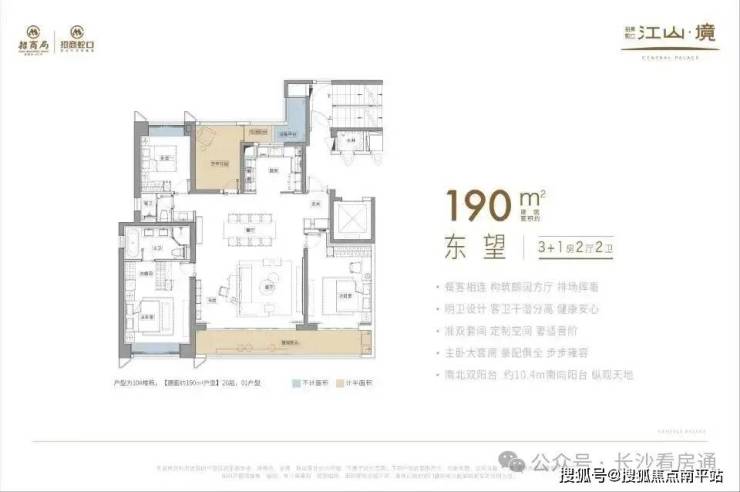 目前一期主推190㎡,四开间朝南,10米巨幕阳台超霸气、双套房。