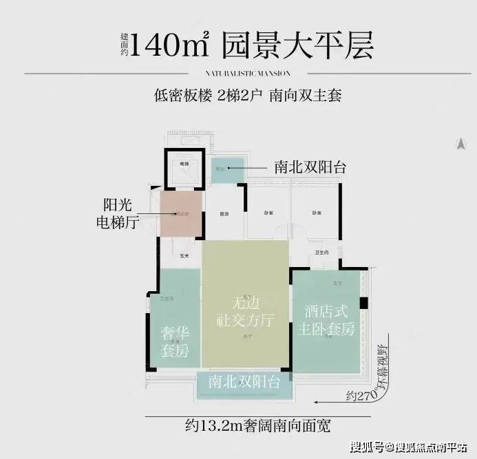1、板楼设计,享中轴园林景观。户型为低密板楼设计,这在市中心比较少见。2梯2户设计,两条梯腿楼栋并列分局,电梯位于核心筒中间,业主从电梯出来后,往两个不同方向回家,互不干扰,相当于1梯1户。11栋位于社区中轴,楼间距较宽,且该户型三面被园景包围,极具赏景性。