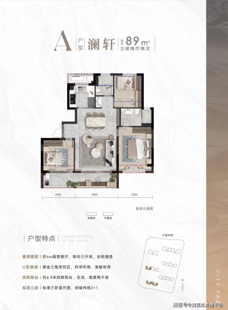 户型面积:建筑面积约89-146㎡