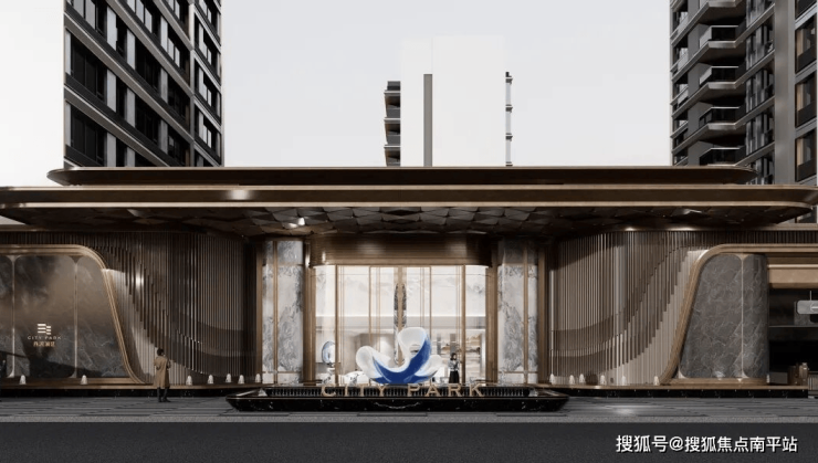 建筑采用现代简约风格,蓝灰玻璃与浅色系铝板交织,香槟色铝板点缀,搭配精致窗框比,与花榕共筑瓯江新封面