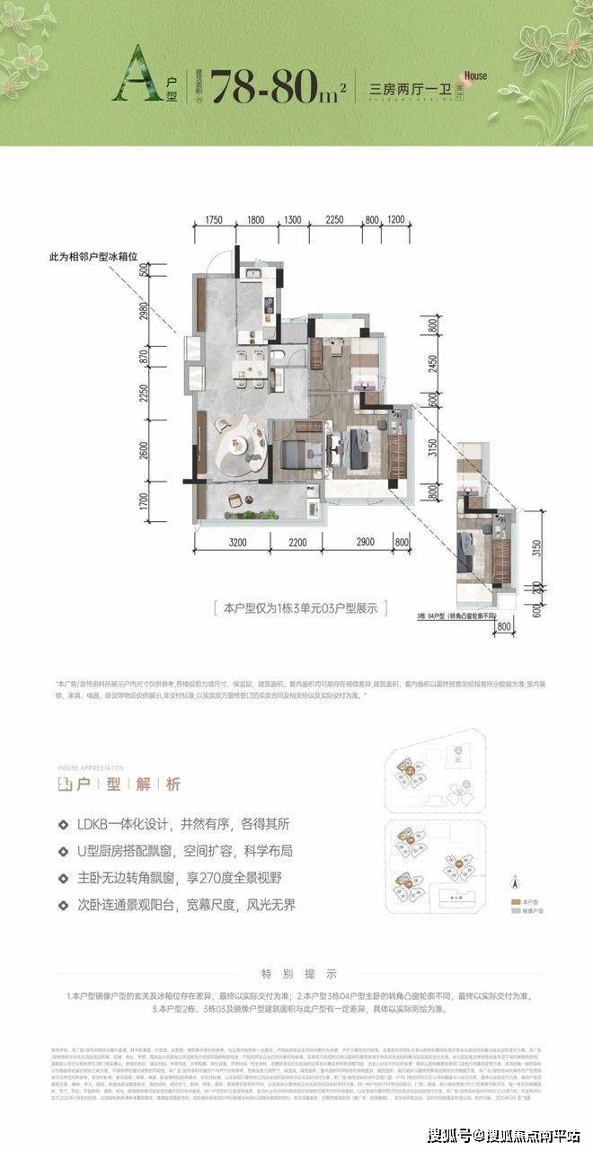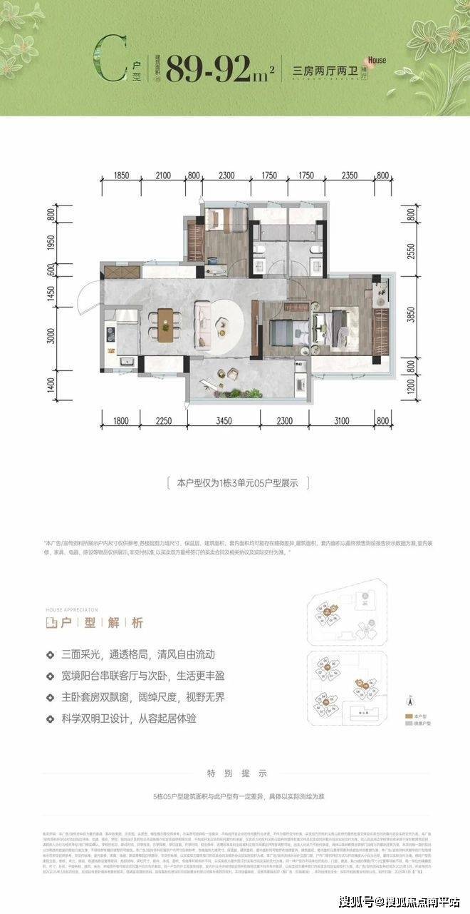 首次推首北地块1栋3单元,约80-92㎡ 3房,共195套,新规使用率高达96%-105%!