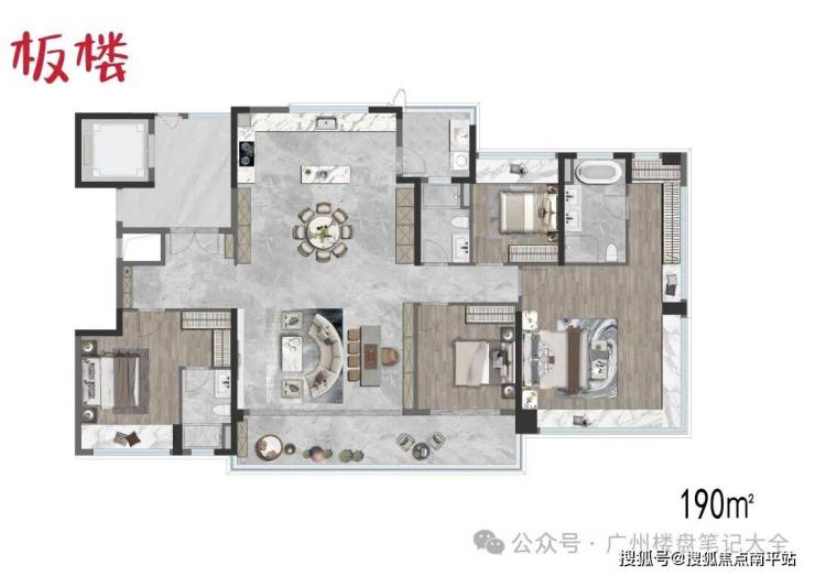卖点五 、纯四-五房大户型设计,实用率超 100%;