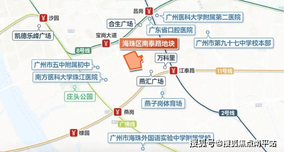 交通上,周边环绕2号线、8号线、11号线三条地铁,步行约400米可达8号线宝岗大道站,900米可达2号线与8号线交汇的昌岗站,半小时通勤圈覆盖中大、琶洲、珠江新城等核心商务区,不管是上班还是日常出行,都十分便捷;内环路、鹤洞大桥等主干道环绕,自驾出行也很顺畅。