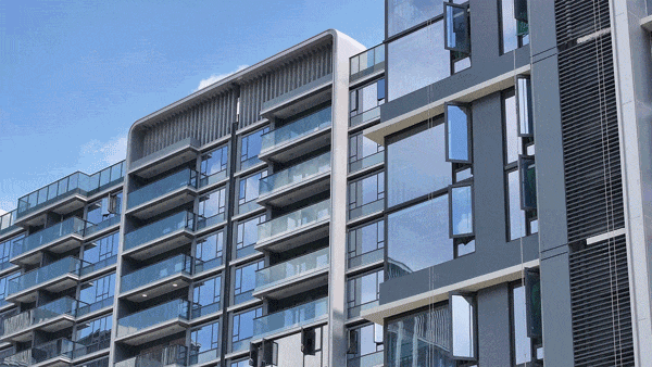 小区外立面大面积玻璃幕墙+金属铝板+汤臣一品同款栏杆,飘窗下沿采用国内先进玻璃下包工艺,搭配类幕墙窄窗框及高窗墙比,带来超大屏的采光面和观景视野,以灵动曲线勾勒楼体线条,呈现出动态美感,惊艳于时代的品位。