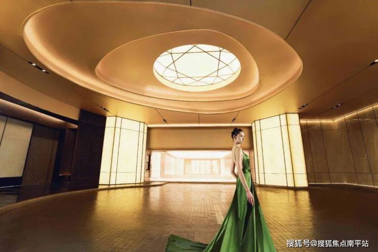 大面积玻璃幕墙、香槟色金属铝板,搭配直线和弧线的流线设计,再加上轻巧的中式飞檐,尽显 东方气韵的同时, 简约高级的现代质感扑面而来。