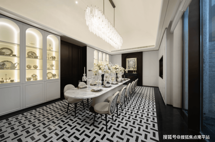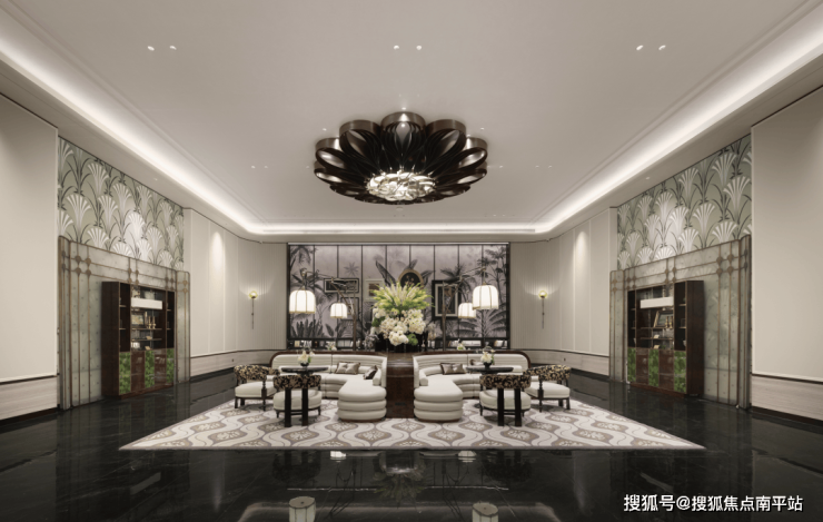 初入接待前厅,循序“光材形”协同之道的水晶吊灯优雅迎宾,光影流转间,点映出银光四射的斑驳质感。