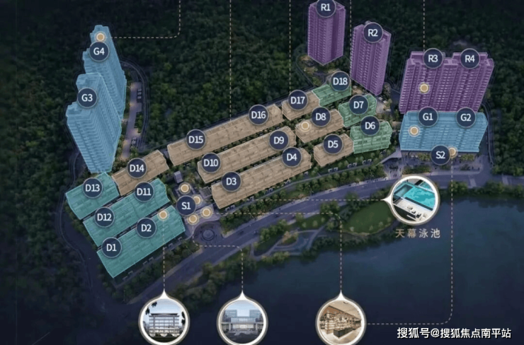 项目除了4栋R1-R4栋政府配建房以外,对外销售的产品涵盖叠墅、小高层和高层,户型建面均为143㎡。中间一线临湖区由18栋4-6层的叠墅组成一梯一户,合计188套;右侧为2栋9层高的小洋房,两梯两户,都是独门独户。同时还有4栋保障性住房,左边是2栋16-17层的小高层,两梯四户。