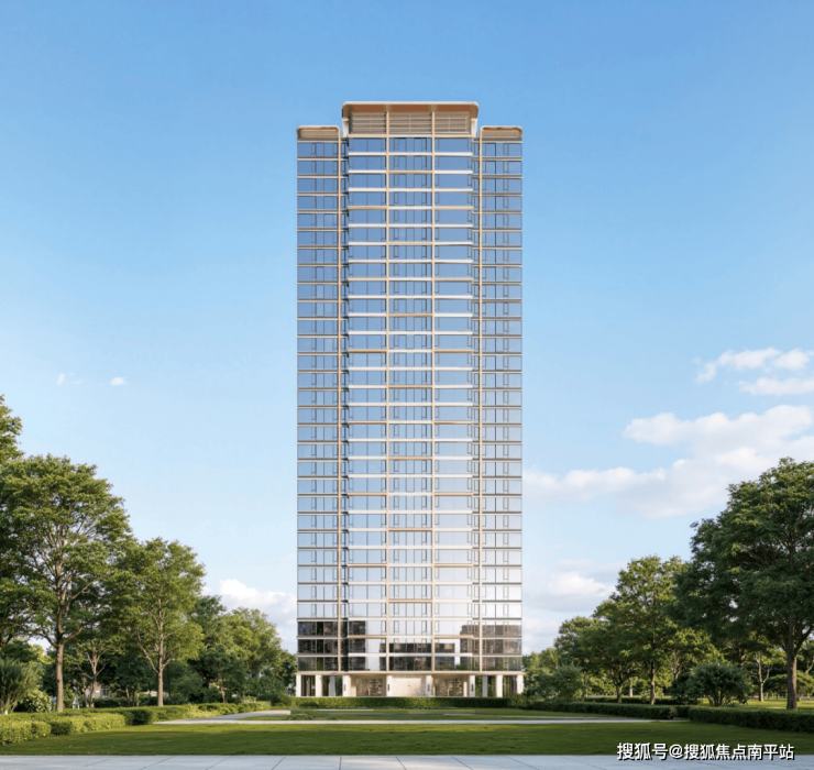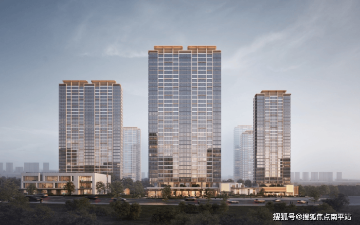 +铝板,把近人尺度的品质感拉满。顶部塔冠采用弧形元素,配合香槟金色金属材料,成为本小区标志性的灯塔符号。建筑形体规整,线条明细,呈现出精致的现代典雅风格,构建出长沙品质住宅小区的标杆形象。