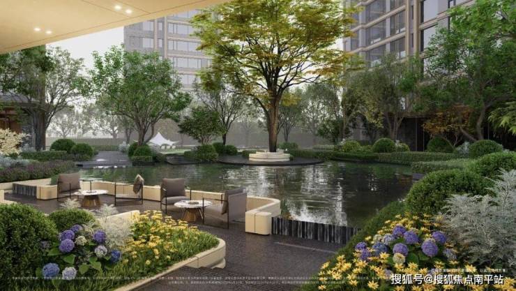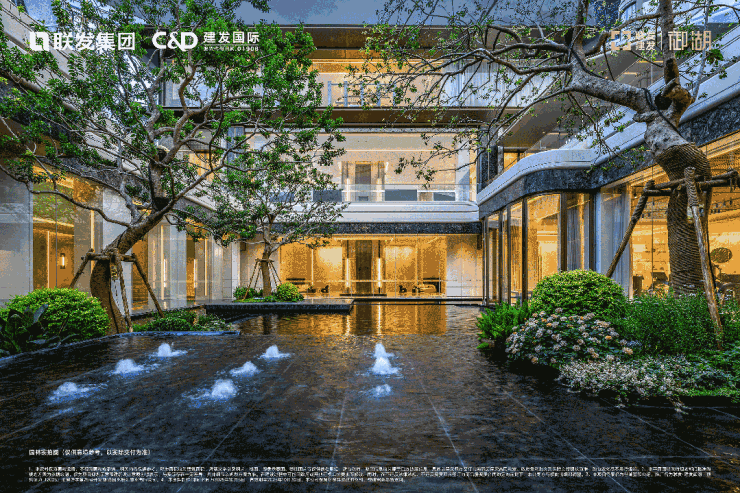 ·整体以 “一轴三境五园”为归家动线,将约 1.2 万㎡中庭臻境打造成流动的圈层社交剧场 —— 引约700 亩玉湖碧波气韵入园,让湖光与园景无缝交织,在这里,散步的闲情、休憩的悠然都化作圈层共鸣的契机。