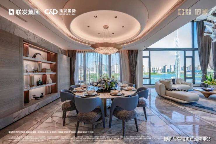 约9.7米南向深浅阳台,将下沉式庭院园林与玉湖风光无缝衔接。全景落地窗设计,让客厅场景与自然景观交融,成就莆田新贵“ 湖境宴客厅”。