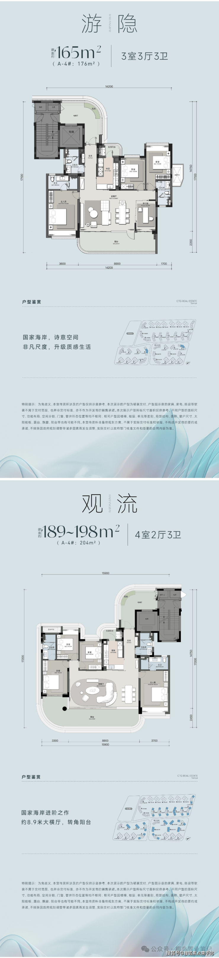 中旅邀请一线设计大师:彼特·罗柏、李宝章、梁景和肖正恒,分别担纲建筑规划、景观设计、空间构建,从空间理念到生活方式,共赴一场诗意生活探索。汲取在地灵感,深度契合属于三亚的热带人文生活方式,进而规划35栋7-11层建筑面积约138㎡至600㎡宽幕大平层产品,筑就先于时代的封面作品,塑造三亚高端人居标准。