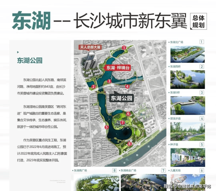 东湖公园:净用地面积约843亩,是芙蓉区“跨河东进”实现产城融合的重要生态连廊,未来比肩洋湖湿地公园,2023年底实现整体开园。
