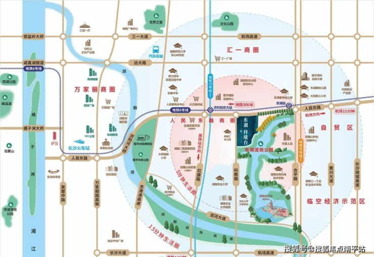 长沙发展的热点板块是滨江新城、洋湖、梅溪湖、东湖板块,本项目位于东湖板块核心。片区是芙蓉区政府“跨河东进”主发展阵地,也是隆平高科技园区核心。