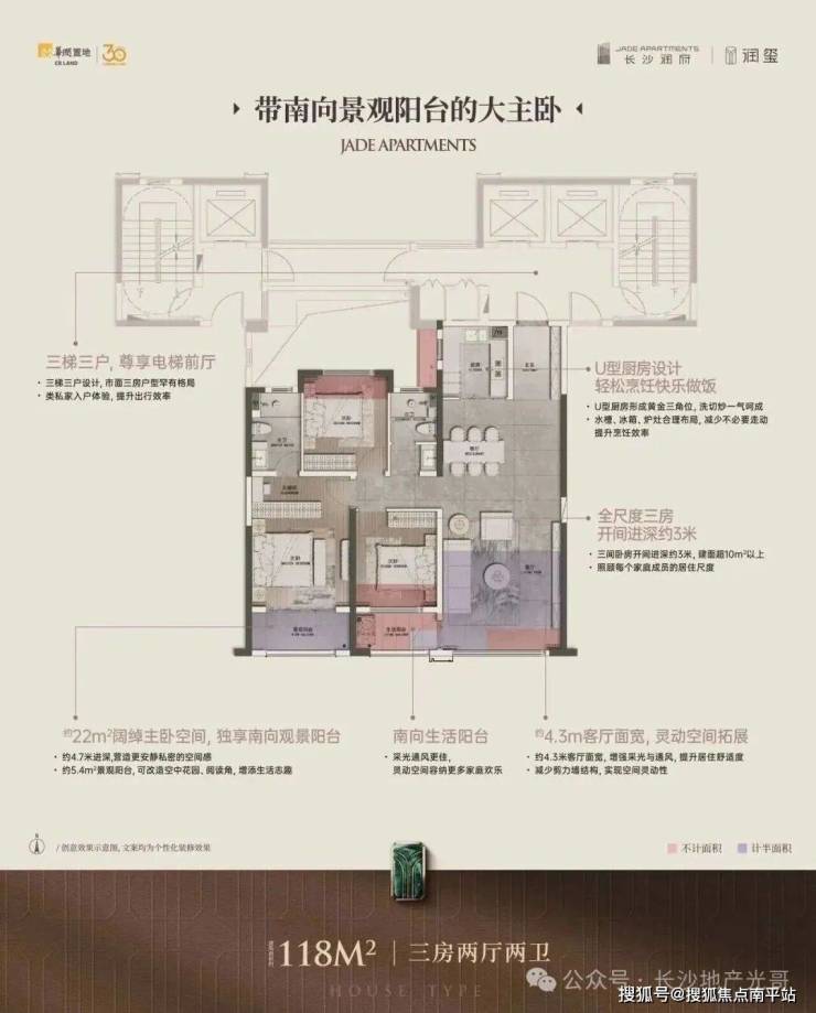 118㎡三房: 中规中矩,适合刚需小家庭,但北次卧对着连廊,私密性稍差。