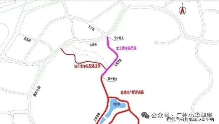 早在5月11日,官方就发布了聆湖路施工总承包公开招标,施工总工期为127天,也就是4个月左右完工。道路全长约418米,南接黄云路地块越秀地产配建道路,北止于大观街,道路等级为城市支路,规划红线宽20米,双向两车道。