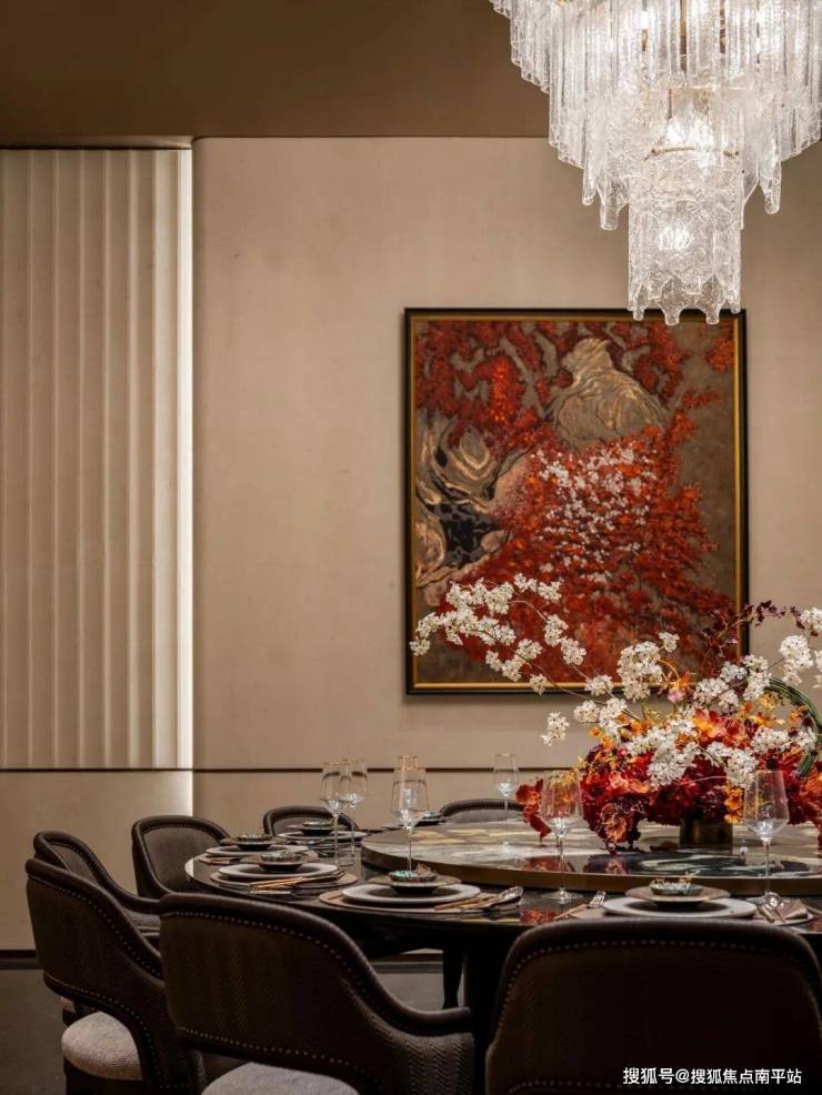 现场的软装与陈设,更是弥漫着艺术气息。应麦可抽象艺术挂画与非遗金属抬錾刻技艺装饰画,形成现代与传统的共鸣,为空间注入了艺术灵魂。