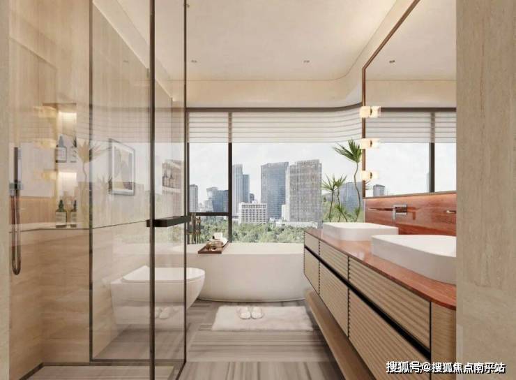 洋房的居高临下+270°环幕视效,让家变为城市观礼台,紫琅湖、湿地公园、一众城市地标等以4K级清晰度闯入生活,媲美万豪酒店总统套房的观景视野。