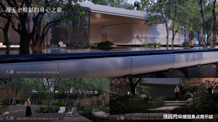红线内外一体规划,临湖退让出千平公园,将湖畔绿地与湖景步道纳入归家动线,形成 “入湖 — 入园 — 入境” 的三重归家动线,形成由开放至私密的自然过渡。